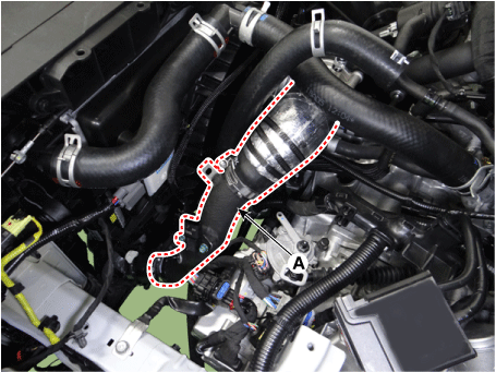 Отсоедините выпускной шланг промежуточного охладителя (А).