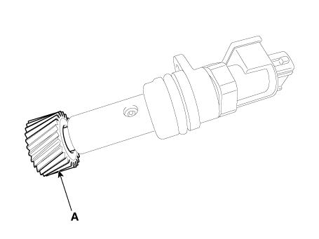 Снимите датчик скорости автомобиля (А) и ведомую шестерню.