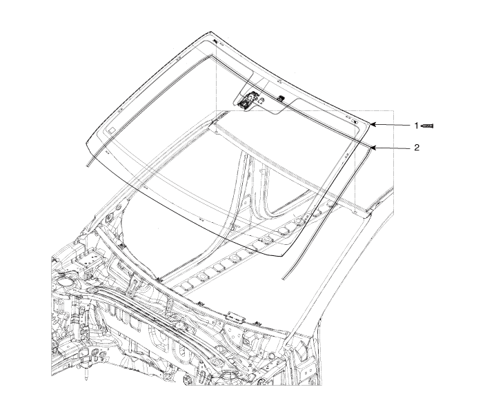Используя нож, соскребите остатки герметика вокруг панели кузова, оставляя около 2 мм - толщина герметика (0,0079 дюйма) на склеиваемой поверхности. При установке новое ветровое стекло, сделайте установочные метки на ветровом стекле и тело.