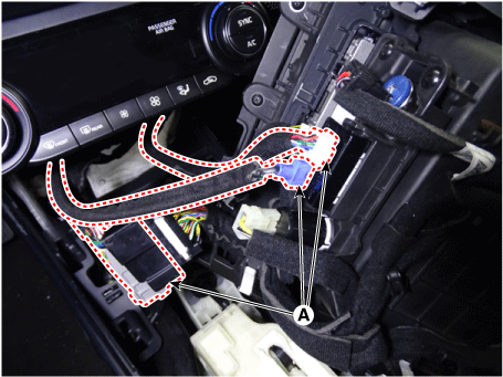 Снимите индикатор беспроводной зарядки (A), ослабив винты после отсоединение разъема.