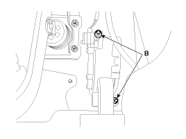 Снимите крепежные гайки (В) и болт (С), затем снимите модуль педали акселератора.