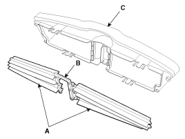 Снимите звено (A) и заслонки (B) с корпуса (C).