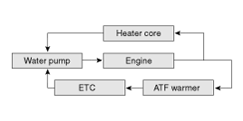 Охлаждающая жидкость двигателя используется для циркуляции тепла, чтобы нагревать и охлаждать масло коробки передач.