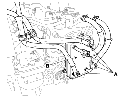 Снимите подогреватель ATF (B) после снятия шланга (A).