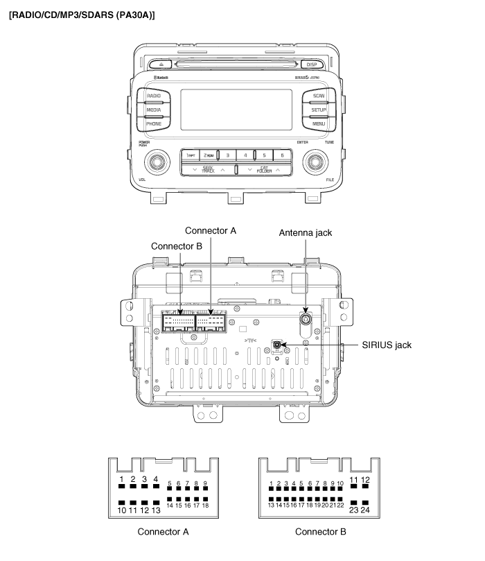 Расположение компонентов 1. Аудиоблок2. Среднечастотный динамик 3. Стеклянная антенна (AM/FM)4. Динамик в передней двери5. Динамик в задней двери6. Кабель питания антенны7. Соединитель фидерного кабеля8. Мультимедийный разъем9. Антенна на крыше...