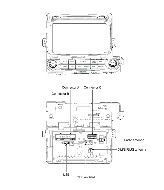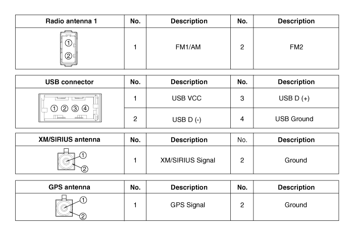 | Разъем головного устройства AVN (аудио/видео и навигация) |
