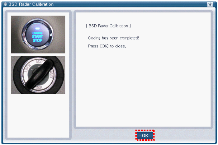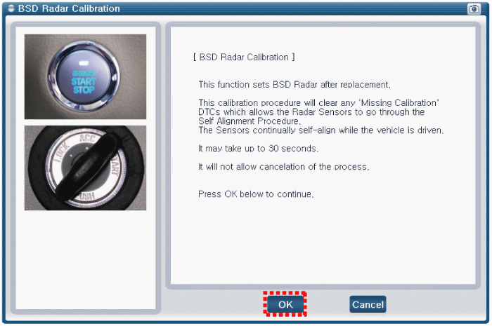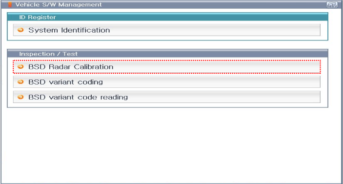 Выберите процедуру «Калибровка радара BSD» в системе BSD.
