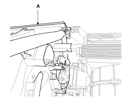 Снимите блок вентилятора (А) с блока отопителя, предварительно ослабив крепежный болт и винты.