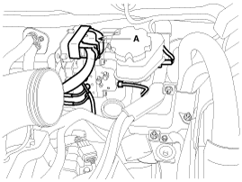 Отсоедините разъем выключателя уровня тормозной жидкости (А) и снимите крышку бачка.