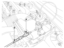 Убедитесь, что обратный клапан (A) закрыт, и подсоедините SST(09580-3D100) (A) к адаптеру (B).
