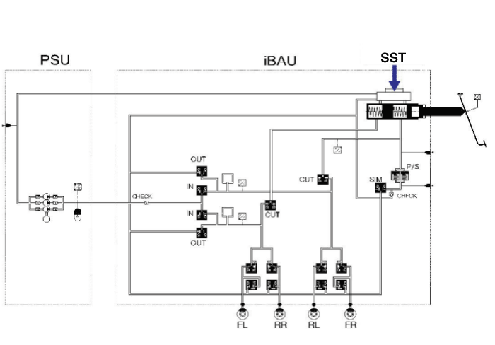 Для прокачки следует использовать IBAU, заполненный тормозным маслом.