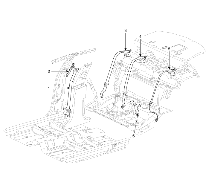 5. Задний ремень безопасности [левый] 6. Замок заднего ремня безопасности. |