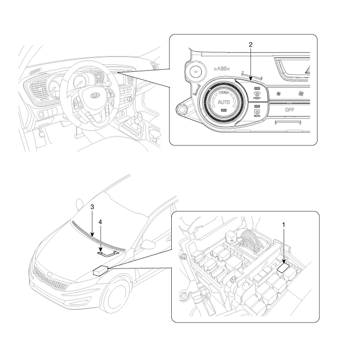 1. Реле антиобледенителя ветрового стекла (встроенный блок реле в моторном отсеке)
