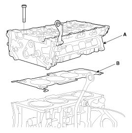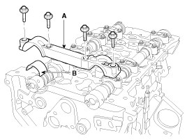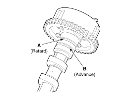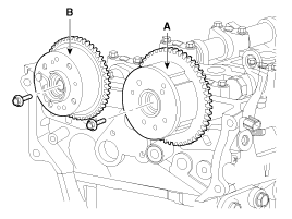 Снимите впускной CVVT в сборе (A) и выпускной CVVT в сборе (B).