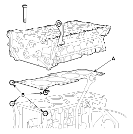 Установите прокладку головки блока цилиндров (А) на блок цилиндров.