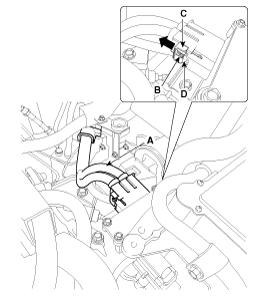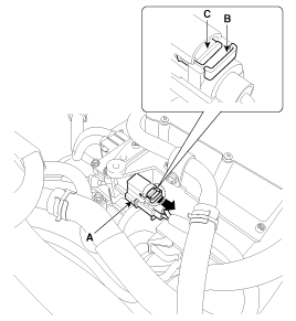 Отсоедините впускной шланг охлаждающей жидкости (А) и выпускной шланг (В).