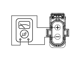 Измерьте конденсаторы между контактами (+) и (-) разъема компрессора.
