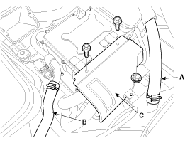 Слейте охлаждающую жидкость из системы охлаждения гибридного двигателя и снимите резервуар, установленный на HPCU.