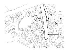 Отсоедините кабель питания двигателя (A) и кабель питания HSG (B).