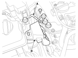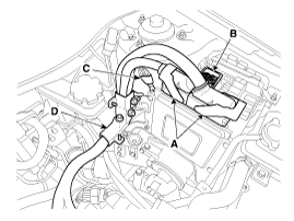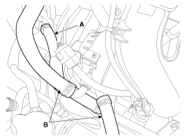 Отсоедините шланги системы охлаждения от гибридного стартер-генератора (HSG) (A) и электрического водяного насоса (EWP) (B).