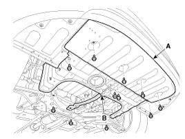 Отсоедините верхний шланг радиатора (А) и нижний шланг (В).