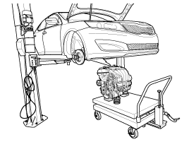 Опустите домкрат вместе с двигателем и коробкой передач в сборе, затем снимите двигатель и коробку передач в сборе, подняв автомобиль.