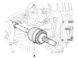 Отсоедините приводные валы (А) от ступиц оси. (См. группу DS - "Передняя ступица/поворотный кулак")