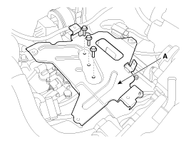 Снимите болт крепления карданного шарнира рулевого управления (А). (См. группу ST)
