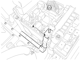Отсоедините разъем ECM (A) и снимите блок реле в моторном отсеке (B).