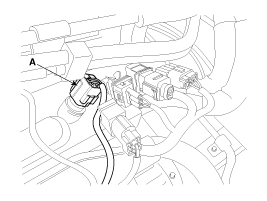 Отсоедините разъем датчика температуры охлаждающей жидкости двигателя (А).