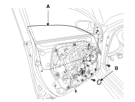 Отсоедините зажимы, затем снимите боковой уплотнитель передней двери (A).