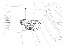 Снятие 1. Выключите зажигание и отсоедините отрицательную (-) клемму аккумуляторной батареи. 2. Сбросьте остаточное давление в топливопроводе (см. «Сброс остаточного давления в топливопроводе» в этой группе). 3. Отсоедините разъем форсунки (А). 4. Снимите болт крепления кронштейна жгута проводов (B). ...
