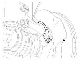 Выверните болт крепления датчика скорости переднего колеса (А).