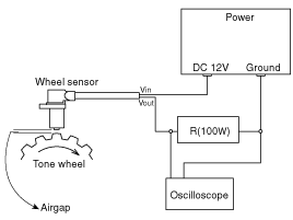 Сравните изменение выходного напряжения датчика скорости вращения колеса с нормальным изменением выходного напряжения, как показано ниже.