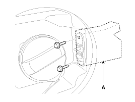 Снимите привод открывания лючка топливного бака (А) после ослабления крепежных болтов.