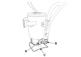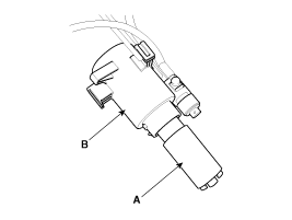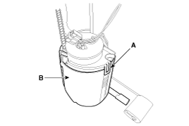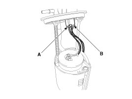 Отсоедините разъем проводки электронасоса (А) и разъем датчика уровня топлива (В).