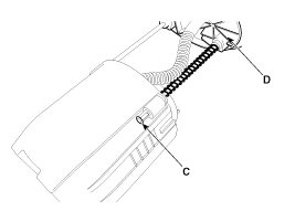 Снимите фиксирующий зажим трубки амортизатора (C), а затем отделите головку в сборе (D).