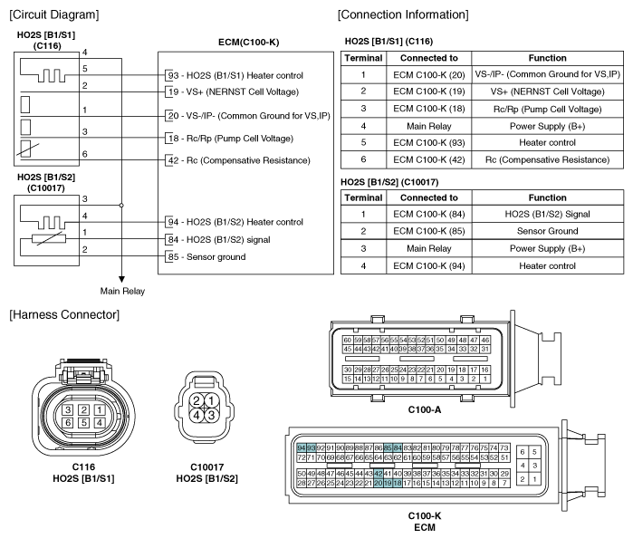 Спецификация HO2S [ряд 1/датчик 1] (линейный тип) ПараметрСпецификацияСопротивление нагревателя (?)2,5 ~ 4,0 [20°C(68°F)] HO2S [ряд 1/датчик 2] (бинарный тип) Соотношение A/F (?) Выходное напряжение (В) RICHПрибл. 0,92LEANприбл. ...