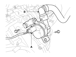 Отсоедините разъем (А) и снимите насос шланга отопителя (В).