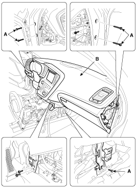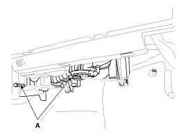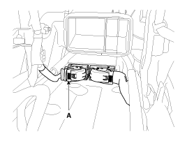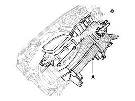 Отсоедините разъемы и снимите блок вентилятора отопителя (А) с подушки безопасности.