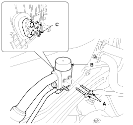 Снимите болты (А) и расширительный клапан (В) с сердцевины испарителя.