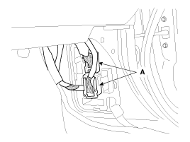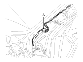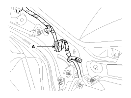 Снимите облицовку передней стойки и отсоедините разъем (А).
