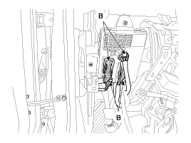 Отсоедините отрицательную (-) клемму аккумуляторной батареи.