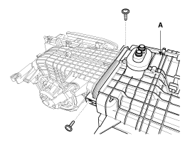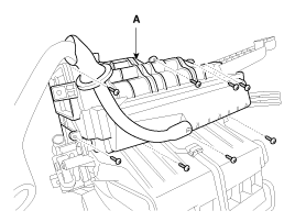 Снимите блок вентилятора (А) с блока отопителя после ослабления винтов.