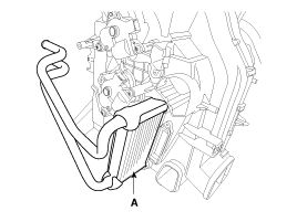 Отсоедините сердечник отопителя (А) от блока отопителя.