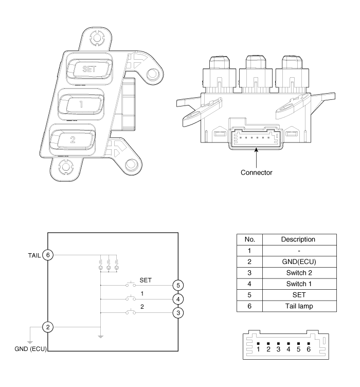 Проверка 1. Отсоедините разъем переключателя управления IMS. 2. Когда переключатель управления питанием IMS находится в каждом положении, убедитесь в наличии непрерывности между клеммами, расположенными ниже. Если непрерывность не соответствует указанной, ...