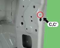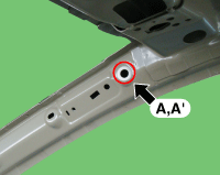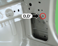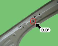 Боковая часть кузова A Отверстие для крепления переднего лонжерона (O20)Отверстие для приспособления в фартуке крыла (O10)Отверстие для крепления верхней петли передней двери (O13)Отверстие для крепления нижней петли передней двери (O13)Отверстие для крепления панели крыла (O6.6)Заднее ...
