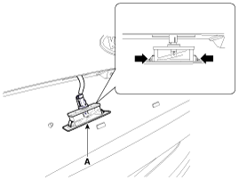 Снимите номерной фонарь (A), нажав на штифты, закрепленные с обеих сторон номерного фонаря.