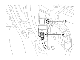 Выверните крепежный болт (В) и снимите датчик с расширительного бачка.
