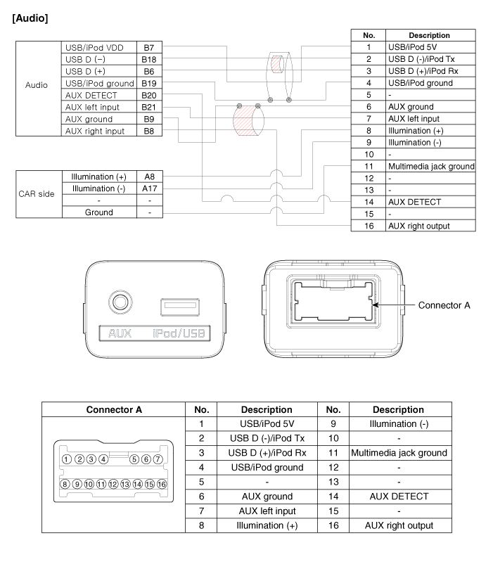 Описание Мультимедийный разъем на верхней крышке консоли предназначен для клиентов, которым нравится слушать внешние портативные музыкальные плееры, такие как MP3, iPod и т. д., через аудиосистему автомобиля, когда они ...